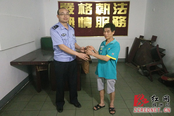 今日下午4点,何三云在株洲市茨菇塘派出所,将拾到的钱包交给民警。