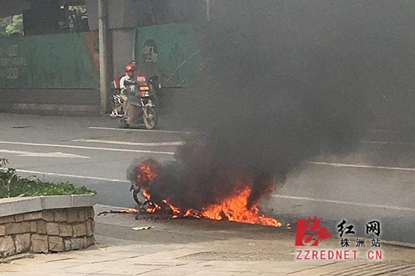 红网株洲6月27日讯(记者 聂千川) 今天下午14点53分,株洲市芦淞大桥河东桥头,一摩托车发生自燃,现场浓烟滚滚,不到十分钟已烧成骨架,导致双向交通受影响。目前,消防部门正在紧急处理。