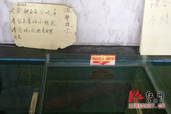 今日下午,记者在现场看到,水池旁确实有多处警示标志,且警示内容有被水长时间浸泡的痕迹,而娃娃鱼被放置在水池中离池边有段距离的地方,需要伸手才能够到。事后,饭店方在水池旁又新加了一块大的警示标志。