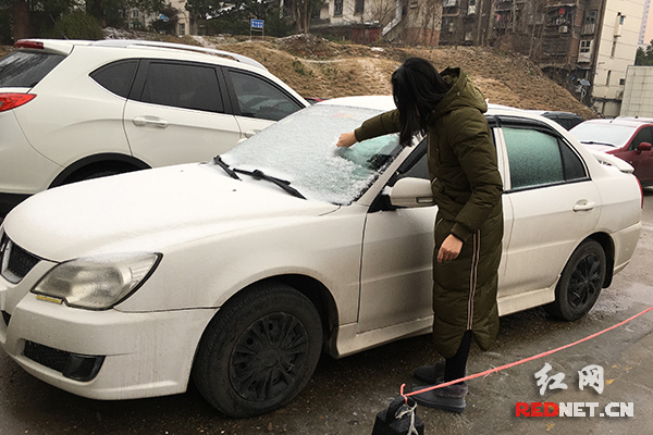 今冬初雪来“赴约”,株洲司机忙擦窗。(曹缇 摄)