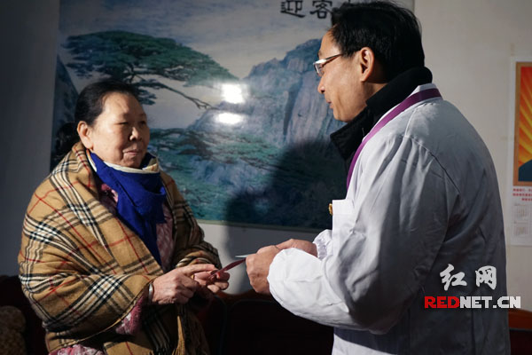 踏着初雪,株洲市人民医院医护人员来到了刘建修家中。
