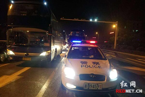 民警引导客车开往湘潭境内320国道。