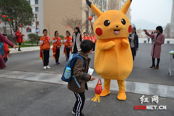 在尚格小学的校门口,还有两位特殊“嘉宾”正在迎接孩子们重回校园。原来,这是家长们扮成比皮卡丘和米妮,给小朋友送新学期“我的文雅目标”卡和糖果。希望孩子们能在新学期有新梦想、新目标,吃颗棒棒糖,做棒棒学生。该校校长马谋幸表示:“家校联合,共育尚格文雅学子是我们共同的目标,所以新学期就给孩子们送上了文雅目标。”