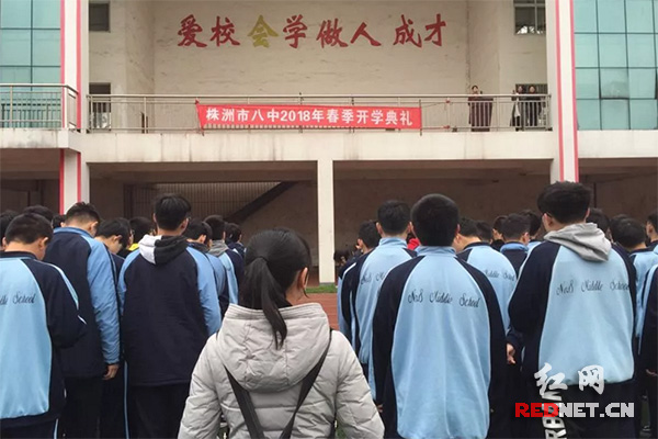 红网时刻株洲3月7日讯(通讯员 吴乔婷)3月5日上午,清凉的春风拂过八中人的面颊,全校师生庄严肃立,升旗仪式上国歌响彻整个校园,株洲市八中2018年上学期开学典礼在体育场举行。