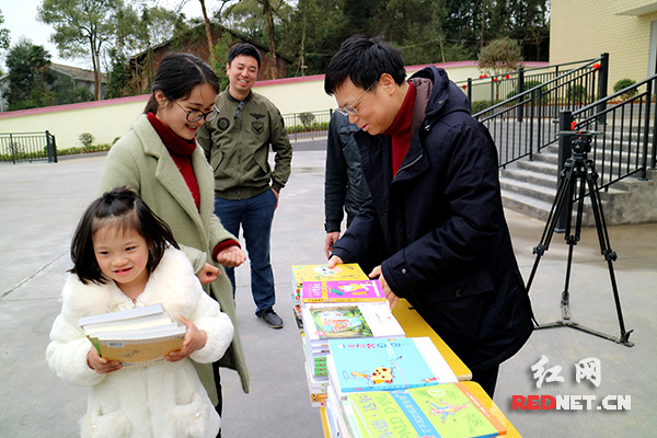 醴陵市纪委机关一支部党员为学生送课外读物。
