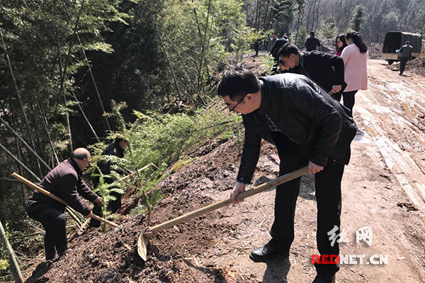 红网时刻株洲3月10日讯(通讯员 邓立平 匡凤 龙忆琳)3月9日上午,阳光明媚。醴陵市茶山镇人民政府机关党支部26名党员,来到该镇茶溪村,义务植树,助力精准扶贫。