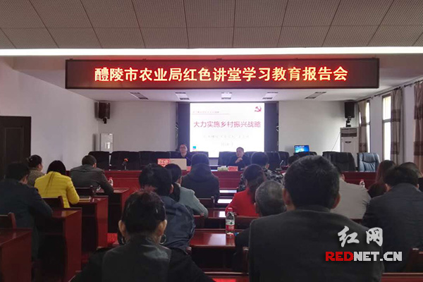 红网时刻株洲3月12日讯(通讯员 邓立平 周阳春)“通过今天的学习,我对如何开展全年农业技术推广工作有了全新的思考。要按照党的十九大精神,围绕‘构建现代农业产业体系、生产体系、经营体系,培育新型农业经营主体,健全农业社会化服务体系,实现小农户和现代农业发展有机衔接’,扎实推广农业新技术、新成果,以此提升醴陵农业的竞争力。”今日,醴陵市农业技术推广中心副主任、高级农艺师张循芳听完党课后说。当天上午,醴陵市红色课堂走进醴陵市农业局。醴陵市农业局党组副书记、副局长唐哲明主持,全体党员干部参加学习。
