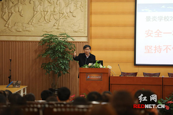 红网时刻株洲3月15日讯(通讯员 洪跃强 李靖华)3月13日下午,景炎学校召开2018年安全工作会议。会议由学校党支部书记刘坚华主持。学生发展中心主任李伟就学校安全工作作专题培训。全体教职员工认真学习,明确了自身职责,签署了“一岗双责”安全承诺责任书,并纷纷表示,一定会切实做好各项安全工作,严格履职,做学校安全工作的守护者,筑牢安全长城。