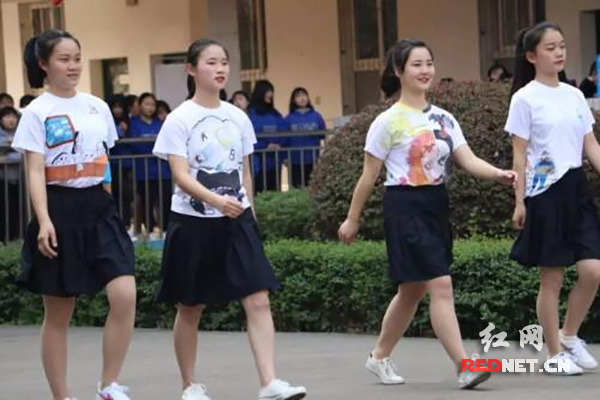一群少女穿着绘有各种图案的文化衫走了出来,她们青春靓丽,阳光自信。想象力就是创造的源泉和动力,幼师科1701班学生充分发挥自己学会的手工制作、绘画技能,把对中职学生公约的理解与体会以绘画的形式表现出来。
