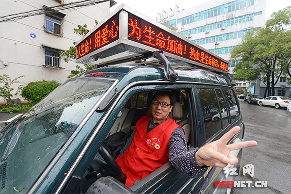 红网时刻株洲3月15日讯(记者 曹缇)一个人献一次血并不难,十几年如一日持之以恒不易,带动数百人参与献血更是难得。在湖南省株洲市就有这样一个人,不仅自己投身“红色事业”,还在自己的私家车顶加装LED电子显示屏,每天穿梭在大街小巷,宣传播放无偿献血知识,累计带动200余人参与献血。