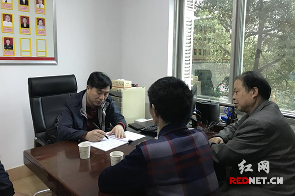 许剑鸣(左一)听取群众反映问题。