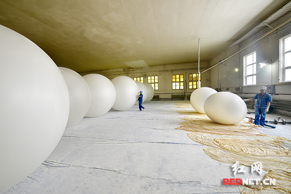 探空气球制作现场。
