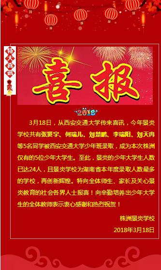 至此,株洲景炎学校少年大学生人数已达24人,且景炎学校为湖南省本年度录取人数最多的学校,再创新辉煌。