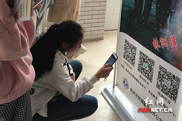 学生们扫码关注“中国禁毒”等微信公众号。