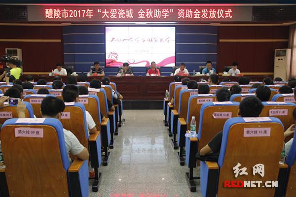 醴陵市2017年“大爱瓷城,金秋助学”资助金发放仪式现场。
