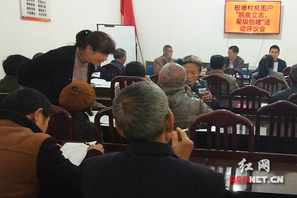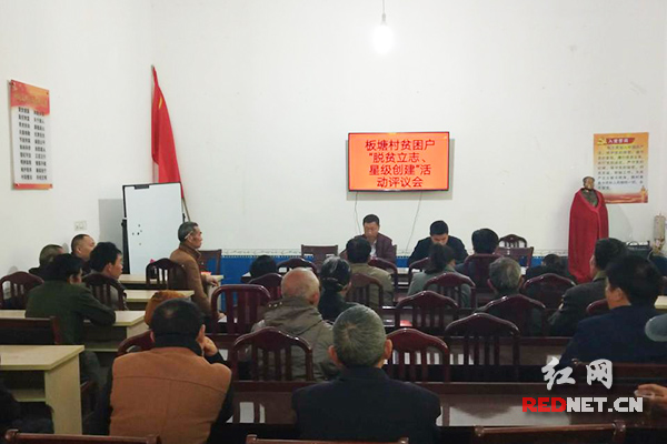 龙船镇板塘村“脱贫立志、星级创建”评议会场。