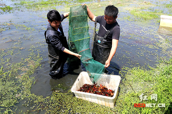 目前,袁宇已拥有200来亩的小龙虾养殖面积,通过一种纯生态的小龙虾养殖模式——“虾稻共作”生态模式,即充分利用现有稻田资源,养出的小龙虾也是真正的清水虾,绿色又高效,又能同时种植一季水稻。