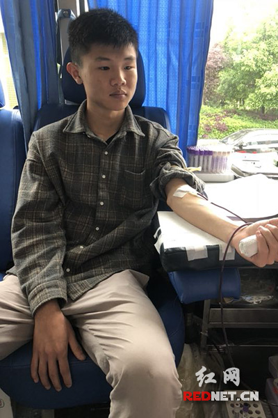 青年志愿服务团团长费皓楠带头献血。