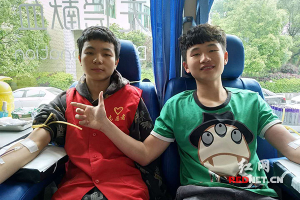 熊江和肖雄飞一起参加献血。
