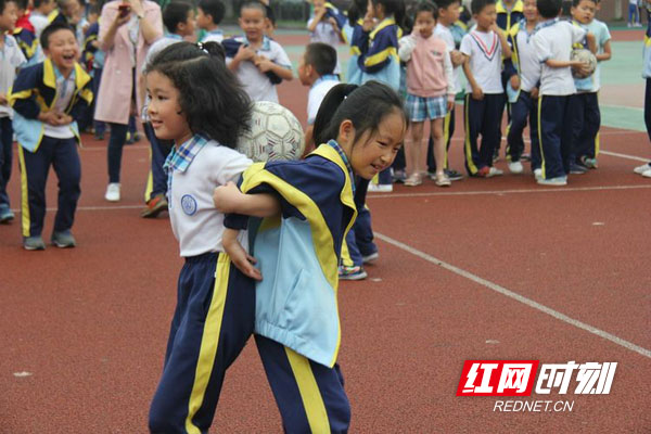 红网时刻株洲5月31日讯(通讯员 曹瑞琪 李理 )灿烂五月,天元区泰山学校首届足球文化节开展得如火如荼。根据二年级学生的特点,确定了以“魅力足球,健康快乐”为主题,以“热情参与,合作拼搏”为主线的参赛项目――足球宝“背”接力赛。近日,二年级趣味足球比赛如期举行。