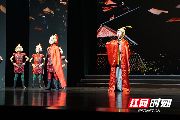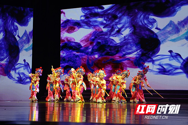 长岭中心小学、月塘分校以及王家坪分校联袂带来了戏曲、陶笛串烧《梨园·神话》。孩子们一举手一投足、唱念做打,都展现出中国文化的优雅风姿和深厚底蕴。