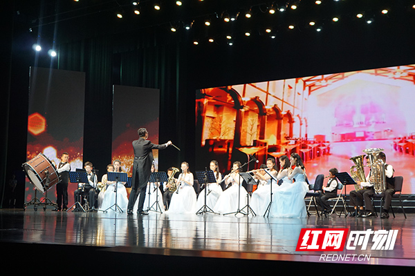天元中学管乐演奏《风河序曲》。