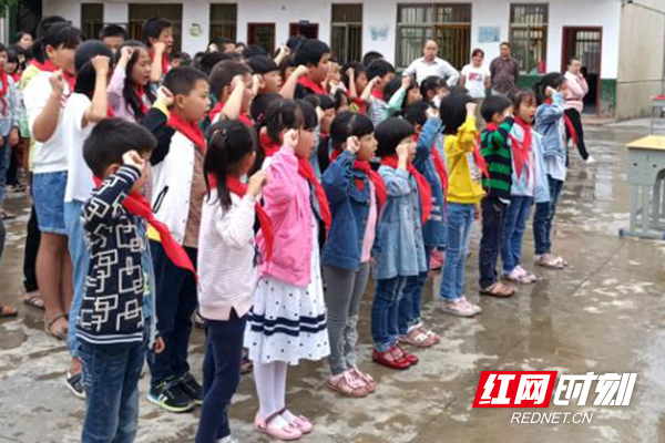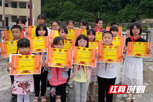 李畋镇石溪学校给新加入的42位少先队员配戴红领巾,新少先队员宣誓。学校还为一直以来表现优秀的少先队员进行了颁奖。