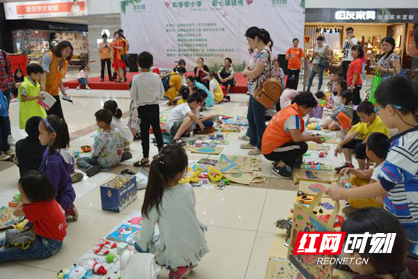 活动随着株洲市心理咨询师协会的涂凌智老师带领全场互动破冰开始。石峰外国语学校陶艺吧的周娟芳老师与孩子互动有奖竞答过后,亲子家庭接受了一场生命教育的洗礼。家长和孩子排队走近奉献箱,以志愿者的身份为康复医院献上自己的一份爱心。接下来,孩子们用DIY手绘环保袋,把对美好生活的憧憬用一幅幅作品表达出来。