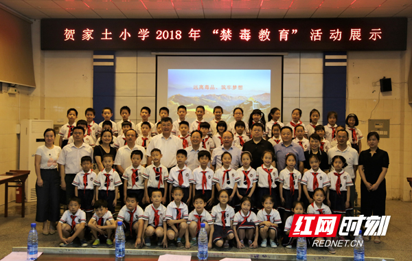 贺家土小学作为株洲市毒品预防教育示范学校 ,一直把禁毒教育活动作为常态化德育工作来开展,如:积极开展校园禁毒“八个一”活动;利用学校网站和校园公众号等网络平台形成家校互动,由学生辐射到家长乃至全社会等等。全校师生将以防毒拒毒的紧迫感、责任感和使命感,为创建健康、阳光、向上的贺小;和谐、文明、无毒的芦淞,做出我们应有的贡献。