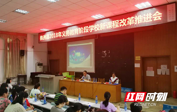 红网时刻株洲6月5日讯(通讯员 龙艳兵)近日,2018年株洲县义务教育阶段学校新课程改革推进会在株洲县五中多媒体教室举行。会议邀请了来自株洲市荷塘区红旗路小学的吴健校长和长沙市湘一芙蓉中学教科室的刘昌荣主任做专家讲座。各义务教育阶段学校校长、教务主任及各初中和镇中心小学的骨干教师代表等共200余人参加了会议。