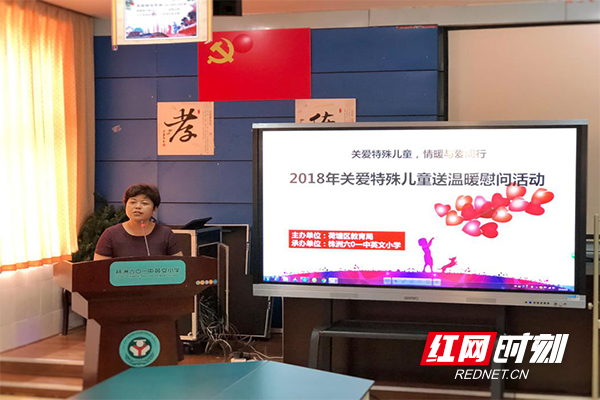 红网时刻株洲6月8日讯(通讯员 田菁)今日上午,荷塘区教育局“关爱特殊儿童,情暖与爱同行”慰问活动在株洲六〇一中英文小学举行,区教育局党委副书记、副局长刘美贞,区人民政府教育督导室主任督学董海军,区教育局副局长王晓红、李挺美,基础教育股全体成员以及荷塘区随班就读的33名孩子和他们的家长、老师参加了此次活动。