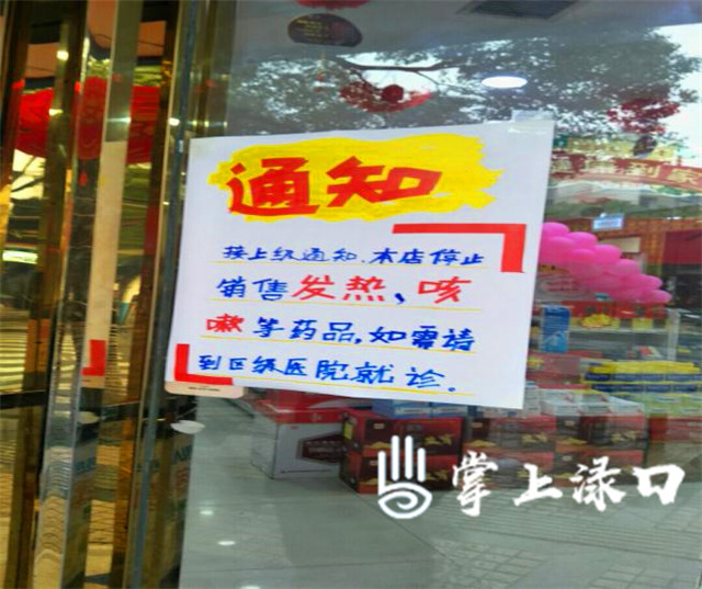 红网时刻株洲2月12日讯(通讯员 傅辉 周伟)为迅速落实株洲市渌口区新冠肺炎防控工作领导小组办公室《关于规范全区发热、咳嗽病人就诊的紧急通知》(渌疫防办发[2020]6号)文件精神,确保早发现、早隔离、早治疗新冠肺炎病人,防止疫情扩散和病情蔓延,区医疗保障局第一时间主动出击,协同区市场监管局对城区内39家零售药店开展联合检查,全区自2月10起所有零售药店暂停销售治疗发热、咳嗽类药品。