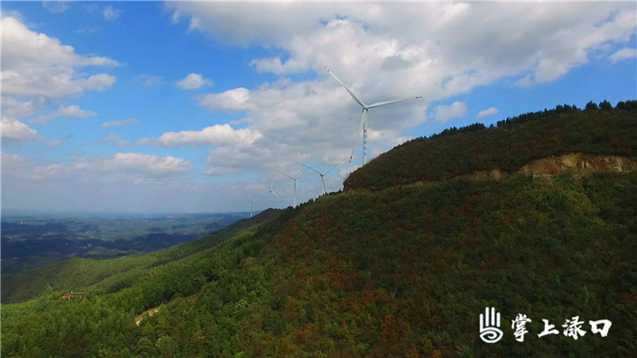 从空中俯瞰,林场境内群山连绵起伏、层次分明,沟冲、溪谷、农田相间分布,“山、林、田”组合特征明显。苍翠挺拔的常绿乔木林与或金黄或橘红的落叶阔叶林交错在一起,数十台高大的风车沿山脊一字排开,在山顶形成了一道靓丽的“风车长廊”景观。