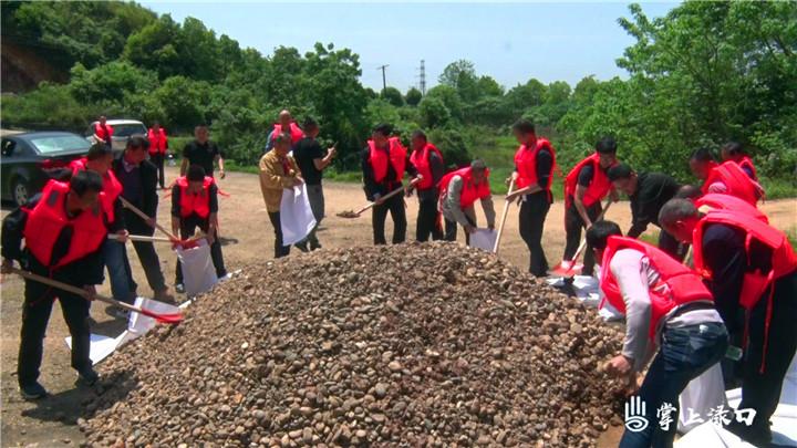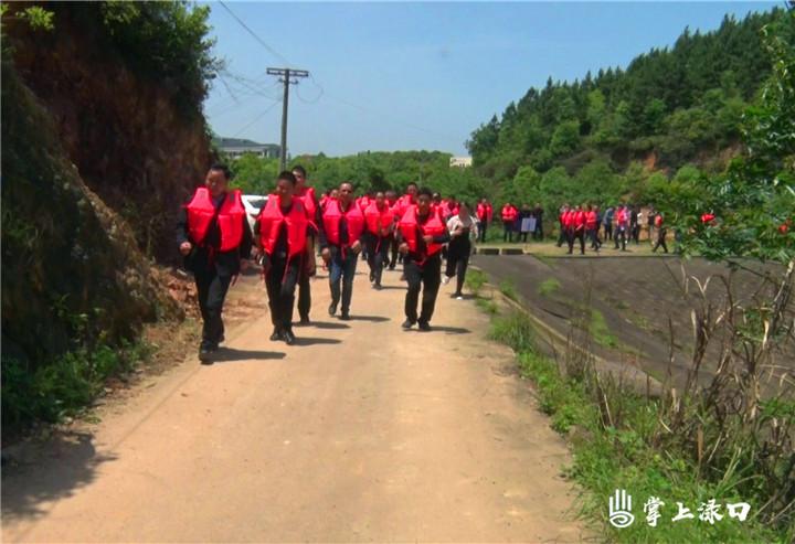 会后,全体人员来到渌口镇松西子社区西塘水库开展应急抢险演练活动。演练模拟渌口区遭遇暴雨天气,水位猛涨,水库大坝下游坝坡发现漏水的情况下,急需组织周边群众安全撤离。
