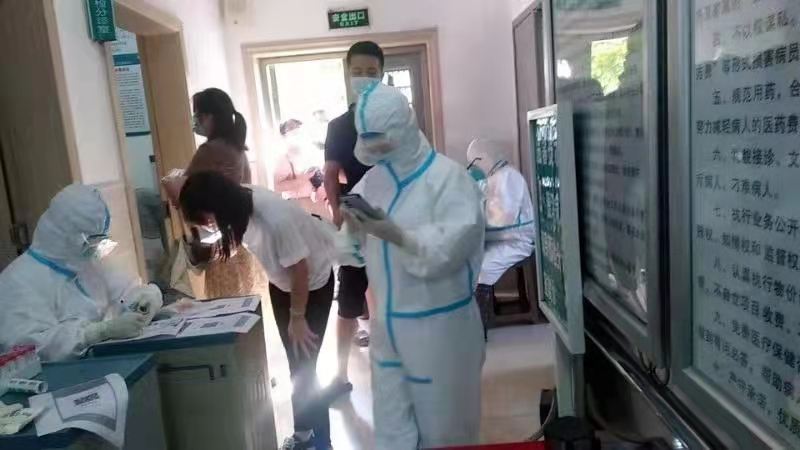 记者了解到,7月31日起,栗雨街道社区卫生服务中心也承担起周边居民核酸检测采样的任务,全中心近30位工作人员投入到该项工作中,全天采样超800人次。在烈日下采样的董可,热到中暑头晕,手也无力抬起,“我同事马上替班,把我扶到一边阴凉处,喝了藿香正气水,又慢慢喝了一整瓶水,休才缓过来。”董可说,不仅有市民送来奶茶,今天中午的午餐,也是不知名的市民以外卖的形式送来,“送了红烧鱼块、辣椒炒肉这些三菜一汤,我们也觉得好暖心。”