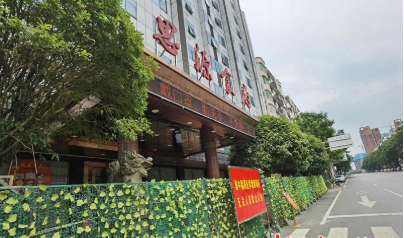 思源大酒店作为渌口区集中隔离管控宾馆之一,承担着疫情隔离人员初步检测及安全隔离住宿任务。酒店外墙10米外已用绿色市政栅栏封挡,只留下一个小的入口,旁边红色告示牌十分醒目,严禁无关人员进入,酒店周边20米范围内的商铺店面早已暂时关闭。