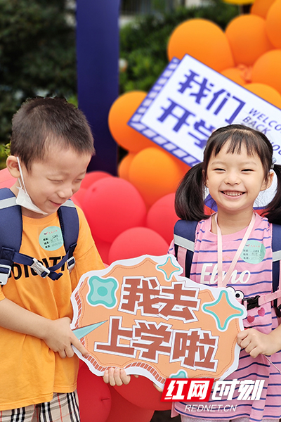 从早上八点半开始,第一批学生在家长的护送下,有序排队走进校园。孩子们可爱的脸上洋溢着喜悦和憧憬,他们先在学校迎新展板处合影,随后被导引老师带到所在班级教室。孩子们好奇地环顾四周,宽敞的教室、整齐的桌椅、崭新的课本、可亲的老师和有爱的同学,看哪都觉得新奇,这一切的新鲜感和美好组成了一串串幸福记忆,留在了孩子们的心中。