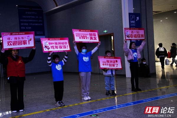一群可爱的小志愿者们举着写有“嘿!株队友!欢迎回家”“听到株洲话,就是到家了”等温馨话语的牌子,早早地就在火车站出口处迎候着每一位归来的游子。当游子们拖着疲惫的身躯走出车站,看到这些温暖的话语和热情的笑脸时,仿佛有一股暖流瞬间涌上心头,让他们一踏上株洲这片热土,就真切地感受到了家乡的亲切与关怀。