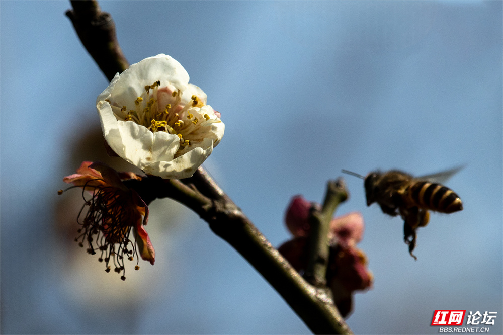 这里的春天,是带着香气的。枝头梅蕊初绽,粉的娇俏,白的素洁,蜜蜂轻绕花间,仿佛连风都沾上丝丝清甜,悄悄漫过湖畔。