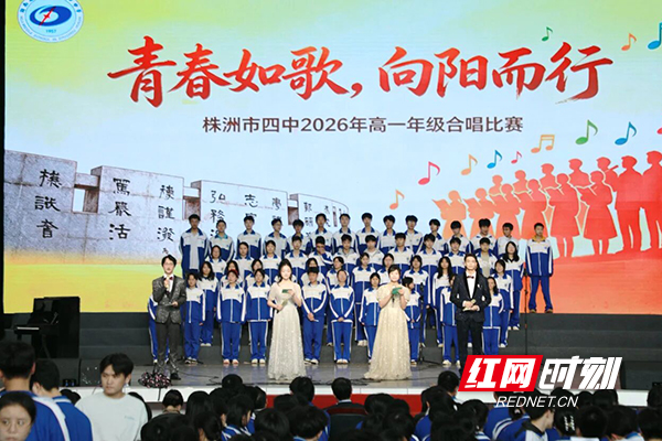 红网时刻新闻4月20日讯(通讯员 程路 谢花荔)为丰富校园文化生活,展现高一学子朝气蓬勃、昂扬向上的精神风貌,4月17日下午,株洲市四中高一年级“青春如歌 向阳而行”班级合唱比赛举行。