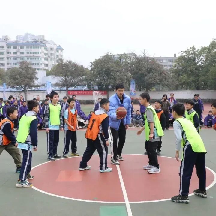▲2025年2月,北京大学男子篮球队与株洲市白鹤小学篮球队的小将们“切磋球技”。(图片来源:株洲市白鹤小学)