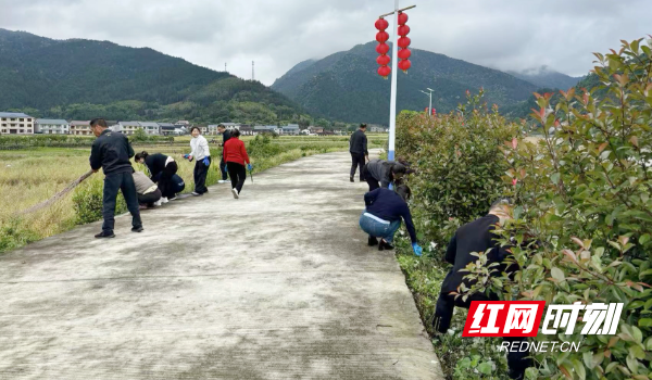 随后,全体党员干部与后盾单位工作人员转战村内一条重要沿河道路。该路段是傍晚村民散步的主要场所。即将入夏,路边杂草疯长,令散步的村民颇为困扰。大家手持镰刀、除草器等工具,分工协作,对道路两侧杂草、枯枝进行全面清理。经过整治,原本杂草遮掩的道路变得通畅敞亮,村民散步时再也不用担心“草里钻出蛇”了。