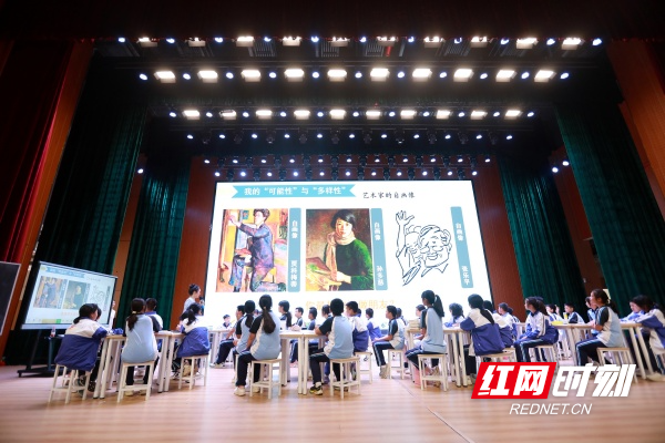 在教学展示环节,来自景炎中学的老师言玉娇和邵阳市隆回县滩头三面学校的老师陈籽润,带来了两堂风格迥异却精彩纷呈的美术课。
