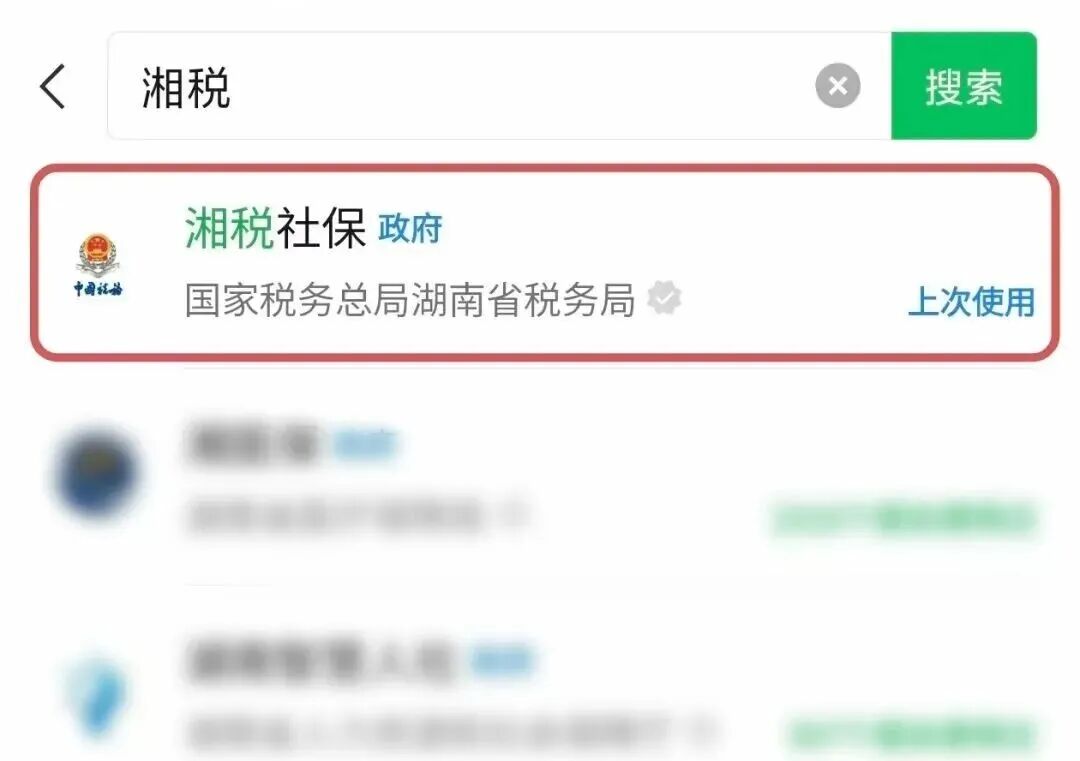 1.在微信上搜索“湘税社保”小程序并进行认证及登录。