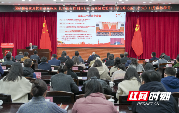活动期间,株洲市税务局、长沙银行株洲分行开展市县两级党委理论学习中心组集体学习,联学以“现场+视频”方式开展,株洲市税务局机关、长沙银行株洲分行人员在主会场参与学习,株洲市税务局派出机构及各县市区税务局人员在各分会场连线参与学习。