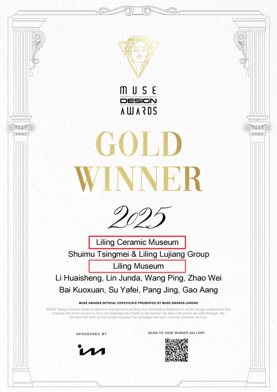 缪斯设计奖(MUSE Design Awards),由美国博物馆联盟(AAM)与美国国际奖项协会(IAA)主办,作为全球设计领域的“奥斯卡”,2025年十周年特别版以“传统与未来的共生”为主题,面向全球100余个国家征集超3万件作品。醴陵陶瓷博物馆从博物馆类别中脱颖而出,成为本年度斩获金奖的中国文博类项目。