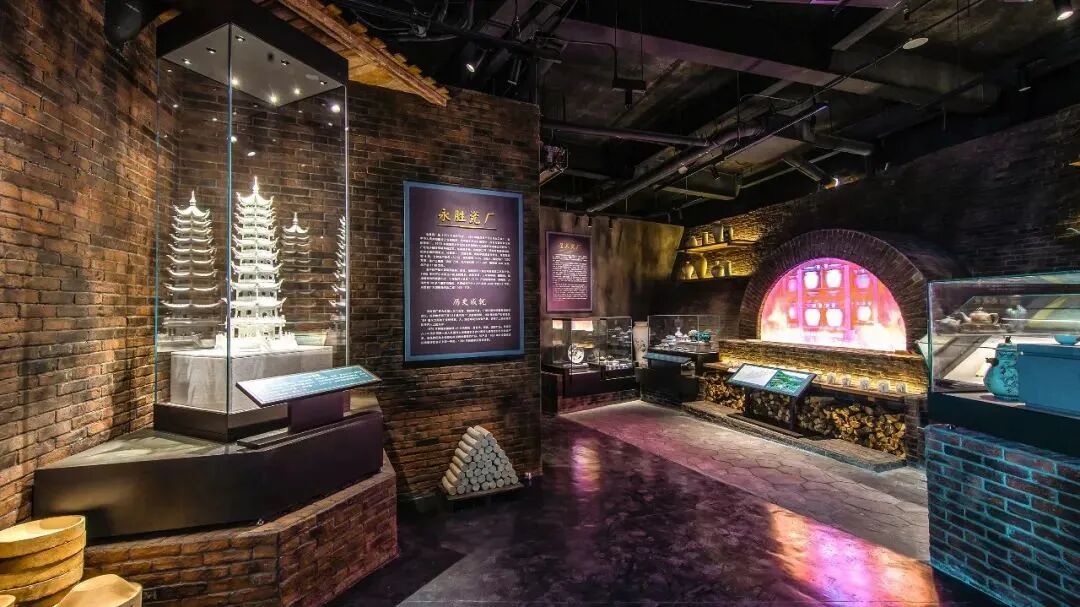 陶瓷博物馆建筑群由意大利阿克雅Archea建筑师事务所设计,以“瓷瓶阵列”为外观意象,室内设计则由北京水木清美装饰工程有限公司承担,二者形成“器形筑魂,展陈赋意”的整体叙事。总建筑面积1.6万平米、展陈面积9000余平米的空间内,以醴陵釉下五彩瓷的“五元素”(土、水、火、釉、彩)为脉络,构建“三馆合一前厅—历史厅—当代厅—互动体验厅”的立体展陈体系。