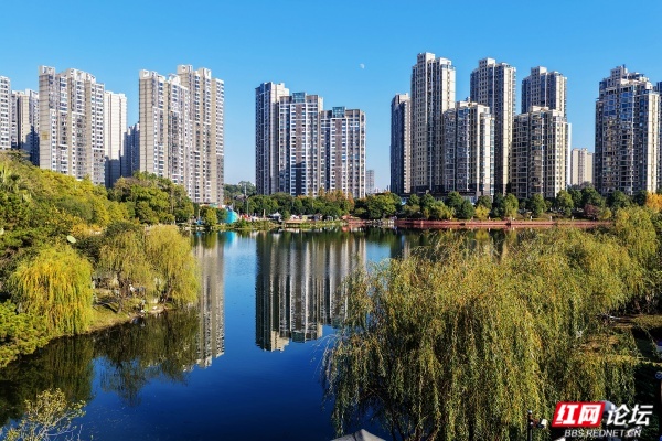 俯瞰栗雨湖周边,道路蜿蜒,秋叶点缀其间,远处的高楼与近处的树木、湖泊构成了一幅现代化与自然交融的秋日城市画卷,让人沉醉其中。(图/文:尹林芬)