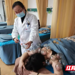 体重管理门诊主治医师胡立红为患者进行拔罐治疗。